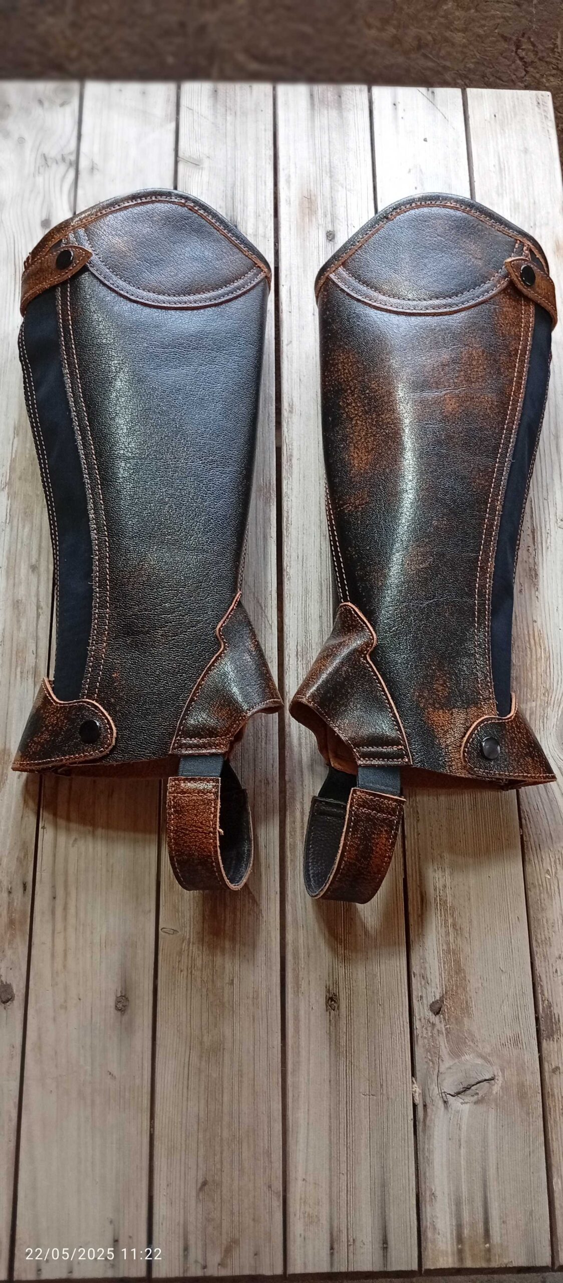 چرم بکار رفته در این محصول از دسته چرم های بوفالویی اصل خارجی (ترک) با ضمانت 5 ساله می باشد  که با گترهای چرم گاوی و گتر های هندی و پاکستانی که به نام چرم طبیعی در بازار موجود است اصلا قابل قیاس نیست لطفا دقت فرمایید
